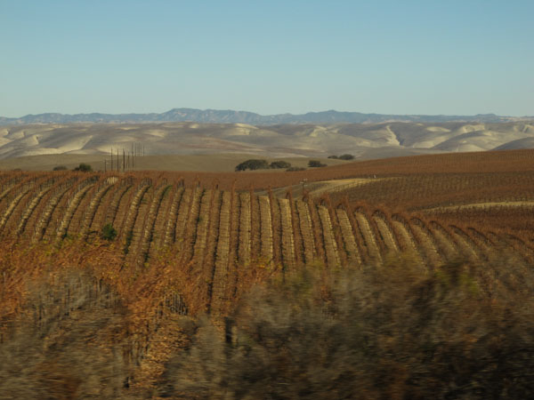 Central Valley Vineyards go on for miles and miles.