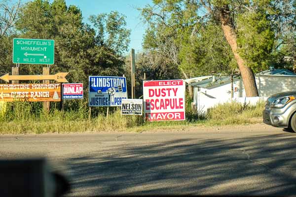 This one's in the bag. Ain't no way a guy named Dusty Escapule isn't elected mayor of Tombstone.