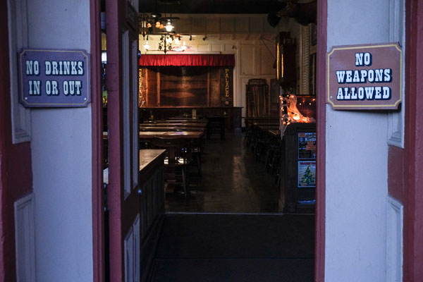 U' best check those guns at the door - and we don't want the alcohol in the streets. There's always 'bin them danged rules.