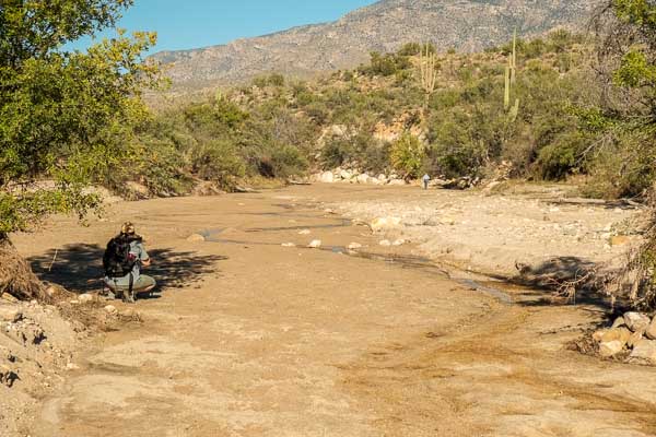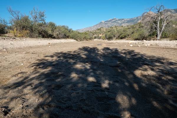 We walked up the wash to where the river runs out of gas. This is the exact spot where the river isn't anymore.