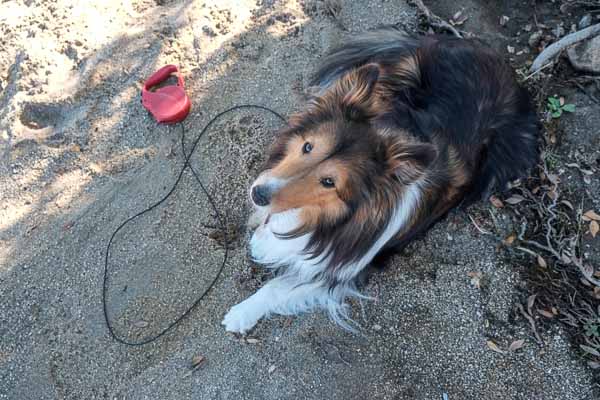 Emma demonstrating the ancient art of divining water by parallel scratches.