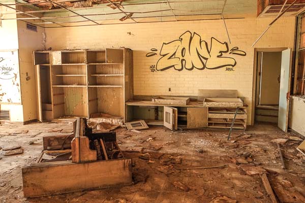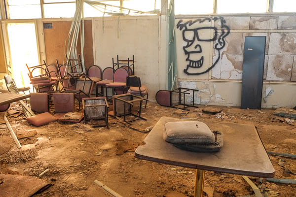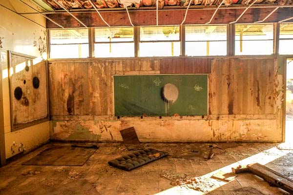 One of two classrooms in Desert Center's abandoned school.