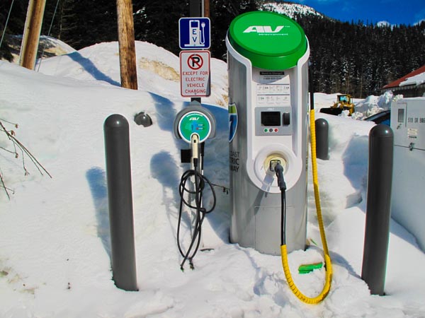Only in Washington State will you find a recharging station for your evergreen, tree-hugging, mountain-blasting all-electric snowmobile.