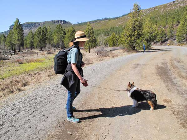 Wendy and Emma eye up the day's walk - a closed forest service road.