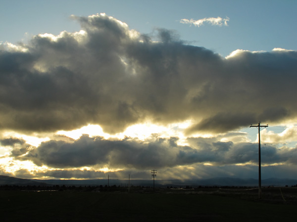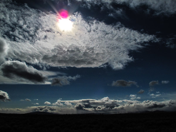 An overwhelming electrical array on this hill top has caused the clouds to curdle.