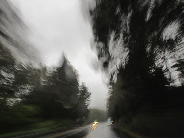 The return drive from Beck's. After a fabulous 5 course tasting menu - the fog and rain await.