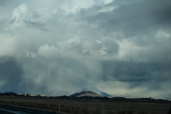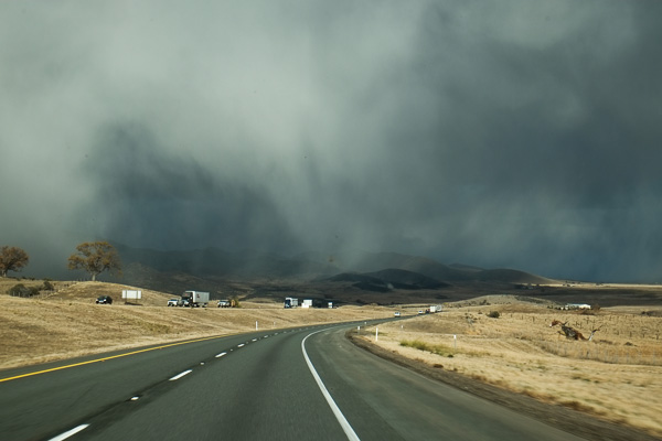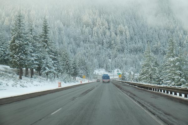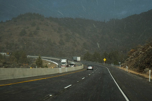 We were just thinking we'd dodged a bullet entirely given the forecast for today's drive. But just past the Siskiyou summit - the snow starts to fly. But maybe it still won't amount to much - where is all that snow we saw on the traffic cams this morning?