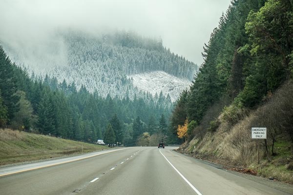 Crossing the I-5 mountain passes north of Ashland gets very close to the snowline.