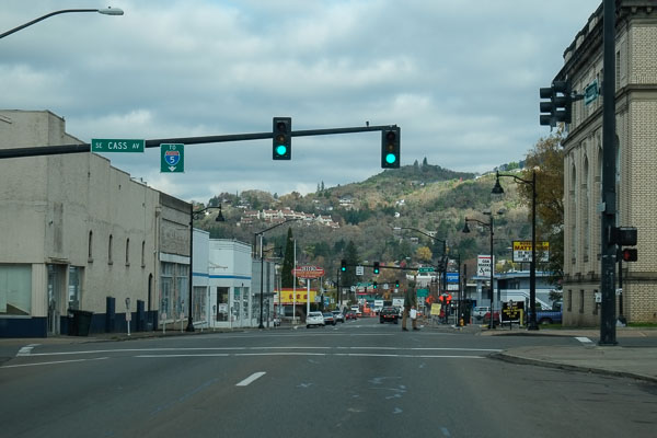 The day dawns with a skiff of snow on the ground in Ashland, but a more serious snowline barely above the town. It is cold. Thank goodness they have great coffee here.