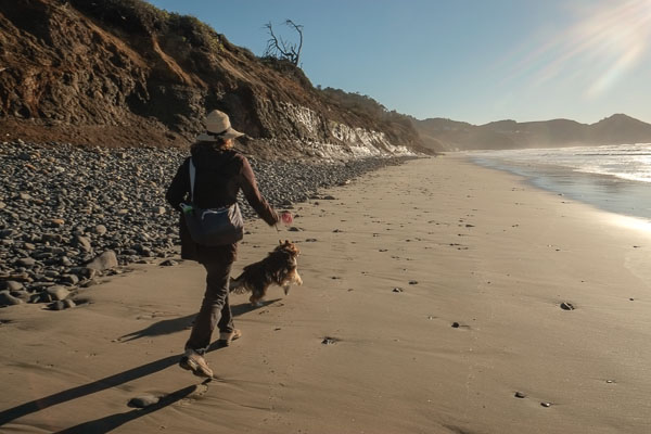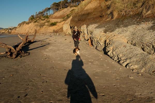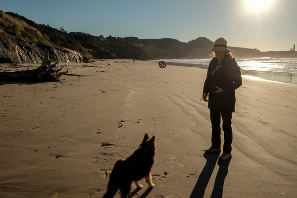 On our way to our new secret beach. The high tide was very high today and has just turned. There's obviously room for a good game of ball, though.