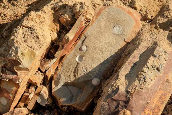 We find evidence of an ancient alien tennis court. These petrefied tennis balls have been carbon-dated to 72M years ago, when the likely competitors had to also deal with T. Rexes. Note the ancient balls are white, suggesting tennis back then was not a popular TV sport.