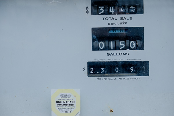 I've always wondered why Oregonians insist on pumping yer gas. It's so you don't see these stickers. In case you can't read it: "UNTESTED UNLICENSED UNAPPROVED STATE OF OREGON USE IN TRADE PROHIBITED DEPARTMENT OF AGRICULTURE MEASUREMENT STANDARDS SALEM, OR 97301-2532 NO. U 23142"