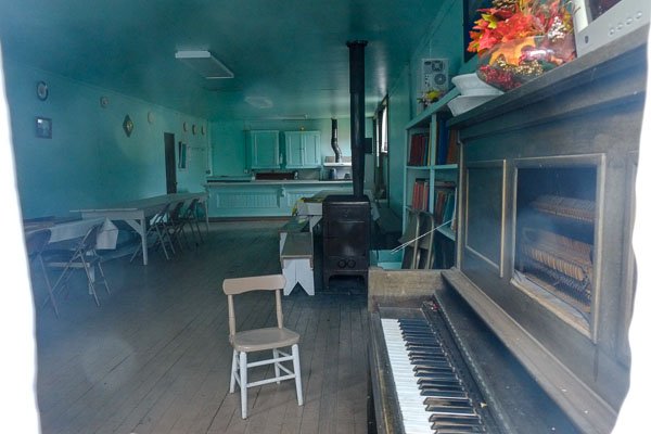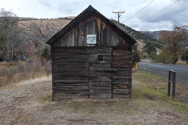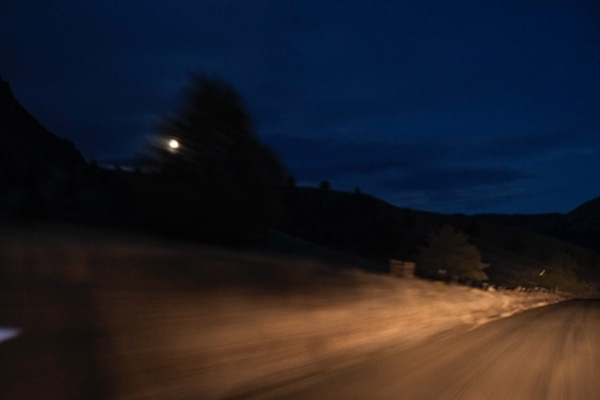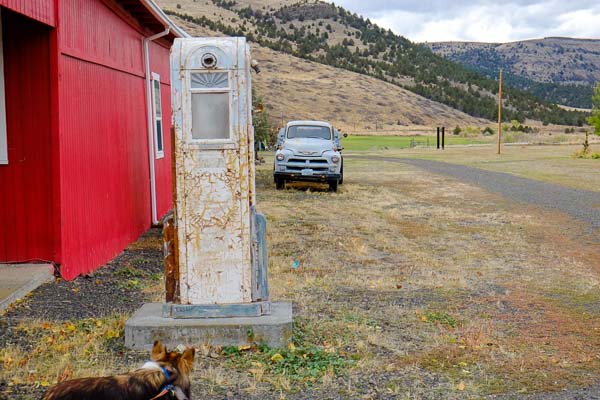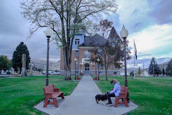 Emma enjoys a sunset sopa al fresco in front of the Wheeler County Courthouse in Fossil.