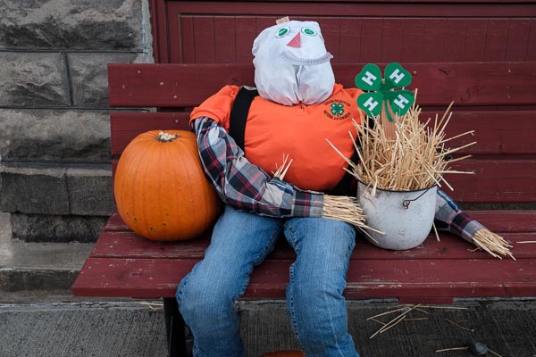 The dreary clouds and industry are balanced off by the 4H club's Halloween spirit.