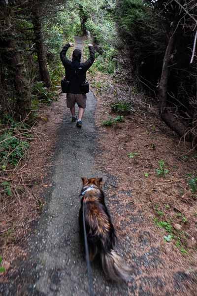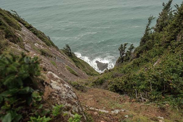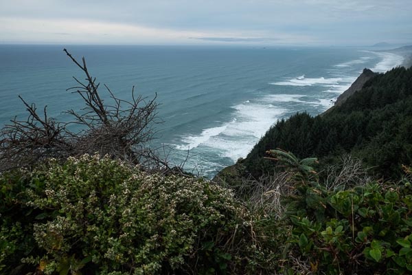 The view from the parking lot at Cape Sebastian. The trail goes all the way to the beach. We're limiting Emma to 2 hours of trail time, so we probably won't make it to the bottom, but the tide is all the way into the cliffs anyways..