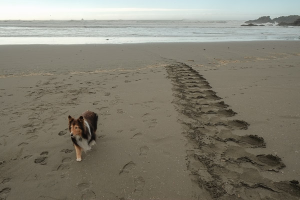 The Coastal Trail leads to the beach! We immediately find a large piece of Oakland, which appears to have floated away in last week's storm.