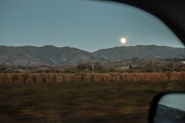 The Super Moon rises over the pumpkin patch. Er - vineyards.
