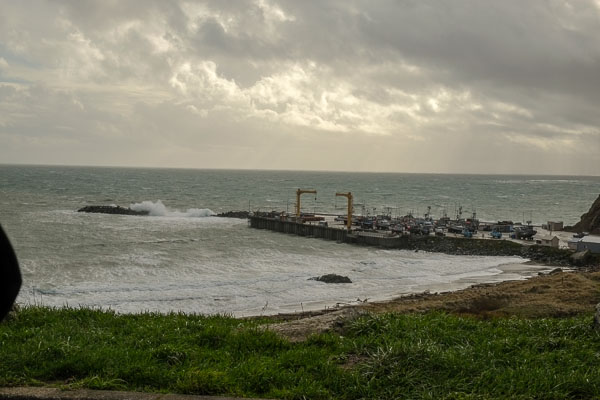 Another wild weather day - huge waves crash over the breakwater at the port. All boats are huddled ashore.