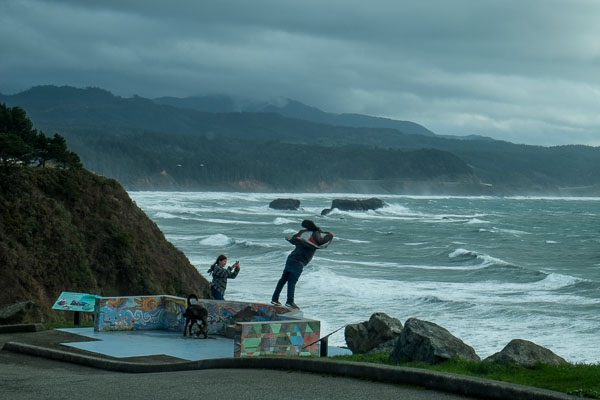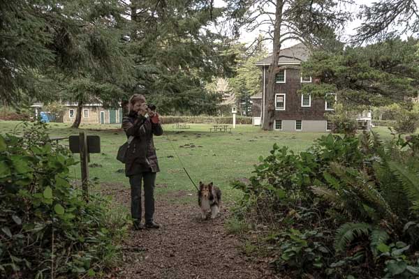 Emma is ready for another run around the Port Orford Head. Sort of. It's even more windy today.