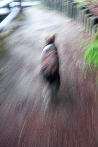 Racing towards snacks on the manicured path.