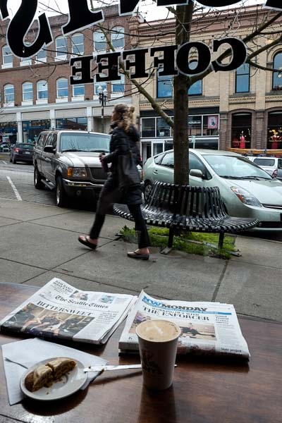 Local news with local coffee - BTW the pumpkin cookie/hybrid thingie is delicious - a Tony's specialty.