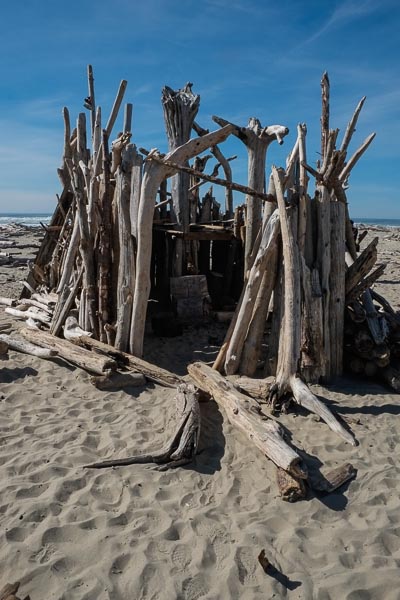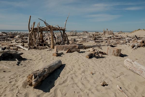 The World Famous Stickhenge on the North Jetty in Florence. Ancient druids built these massive enclosures using unknown building techniques that defy modern understanding.