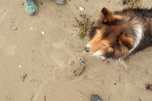 Emma is angered that we neglected to bring the ball out on the beach. Never anger the Sock.