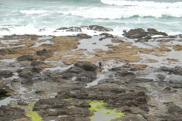 Just below our house, the tourists find the tidepools irresistible. This one has a spade. The waves are watching. And waiting.