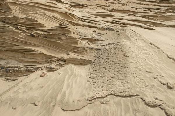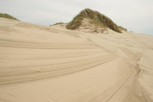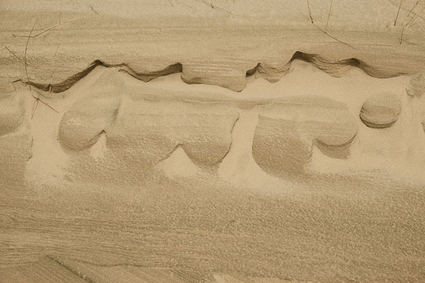 Last night's UFO partly buried its snout in this dune, while trying to parallel park, leaving behind this imprint of its manufacturer's badge.