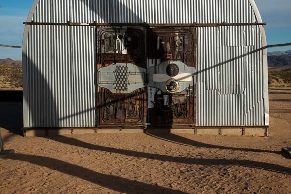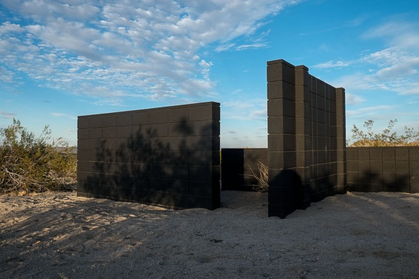 The big black cinder block forms that dot the landscape at Andrea Zittel's.