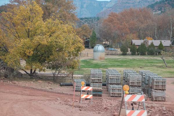 We drive down the closed road - and find this. They appear to have a tiny nuclear reactor, and are building something out of that gamma-ray shielding on those pallets over there.