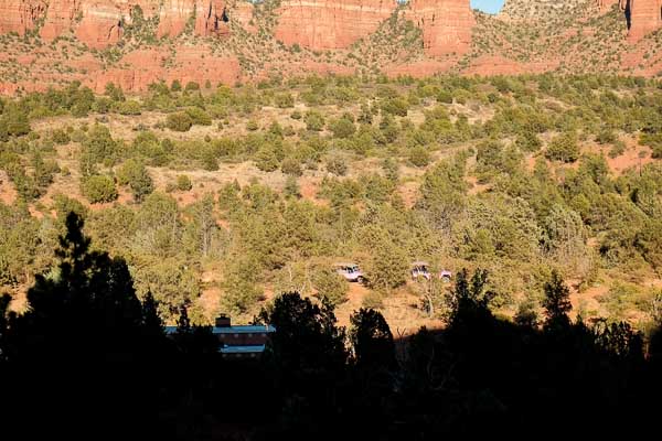 We spot this small herd of Pink Jeeps threading their way through the underbrush. For wildcraft, they are amazingly habitualized to humans.