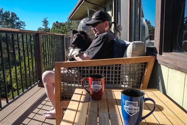 Nuthin' like a first Sedona morning coffee on the sunny porch. Ella will soon become accustomed to the ritual.