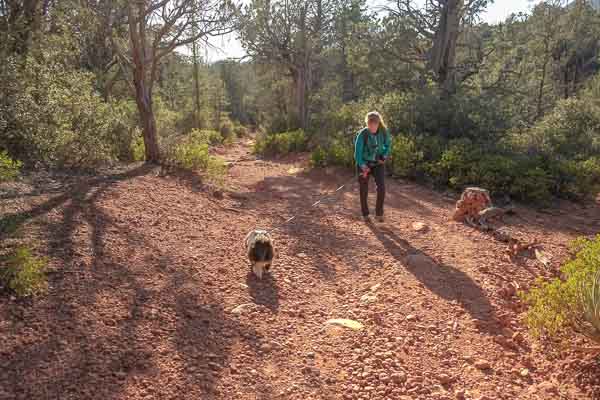Up on the benchland, the trees give way to scrub bushes. Ellie is nervous - she got a whiff of Bigfoot.