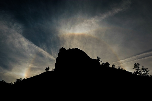 Once again, the top-secret government weather control agency based in Sedona is testing one of their top-secret devices. The dark force-field appears to shield the hill from whatever is going on - the command post is probably buried deep inside.