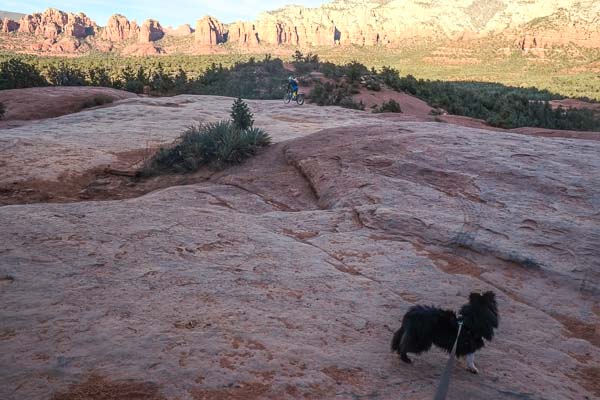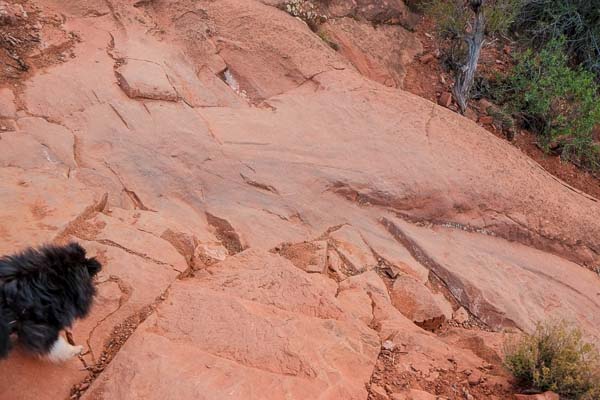 Ellie sizes up our next obstacle. Particularly sobering are the many scrape marks left by bicycles ending badly.