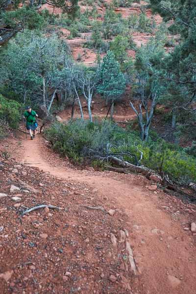 Russ navigates the switchback section - as we descend from the Heavens above.