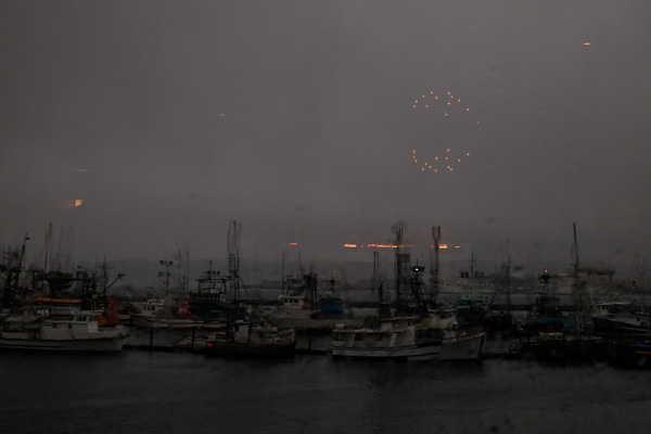 The crab boat fleet remains in port today. The crews are very bored - so they're setting off a fireworks display.