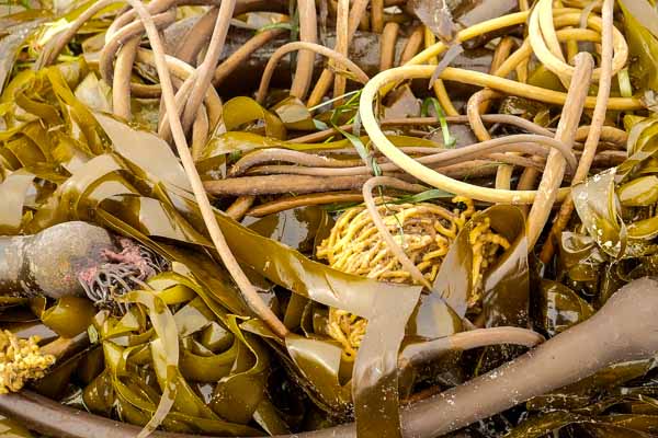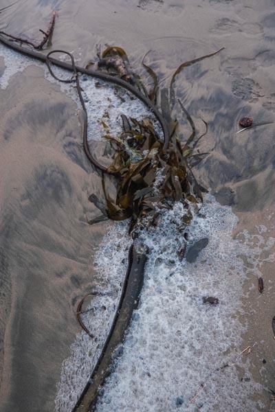 We almost get caught by a sneaky wave - for the 3rd time today! But the sea leaves behind some delightful foamy stuff to surround the shiny kelp.