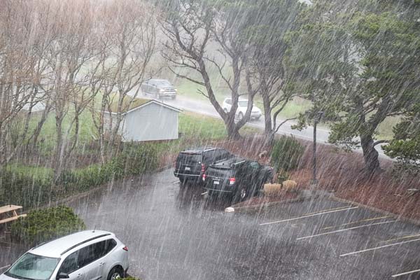 Yesterday's sunshine vanished overnight into 50 MPH sustained winds and crazy bands of heavy rain and hail.