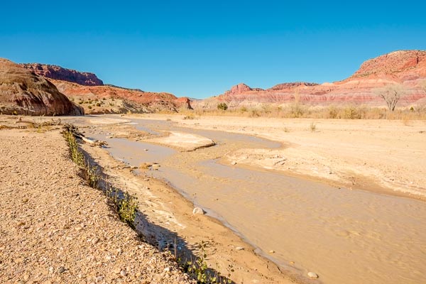 The banks of the mighty Paria River – there is still ice from the prior night's freeze in the shadows.