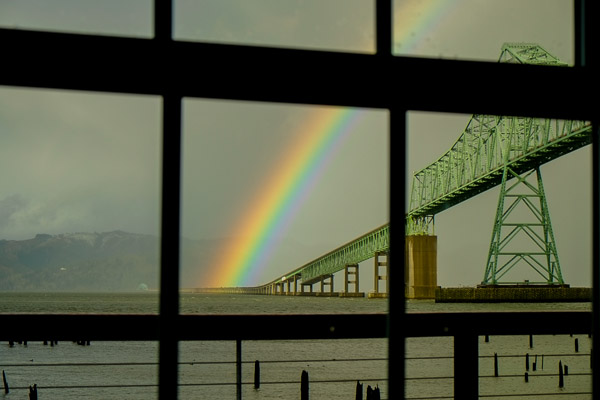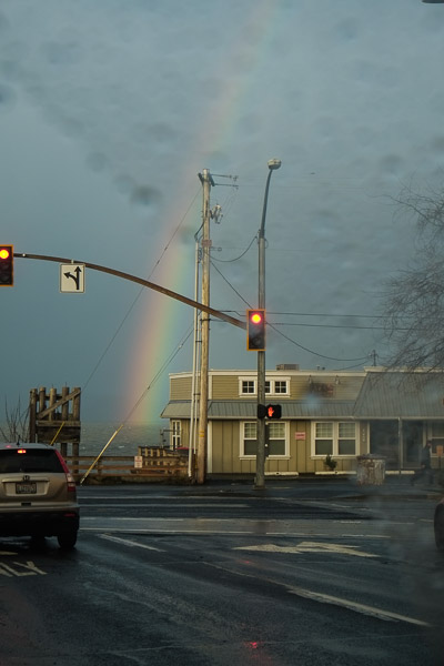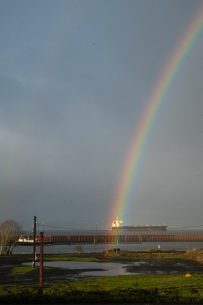 This rainbow has decided to send some holiday cheer to the crew in the wheelhouse of this frieghter. Dismal Nitch was too dismal.