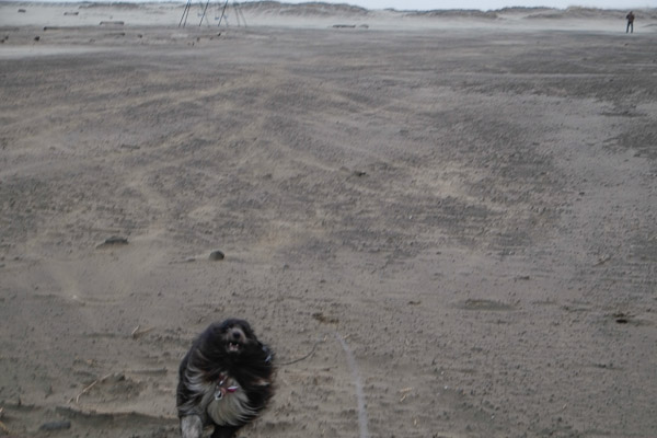 Only to get very quickly even more wild. Ellie loved it - chasing the sand. But she was quickly becoming encrusted - I was trying to jam my camera back into the bag - and she was going so nuts that she yanked the leash out of my hand!