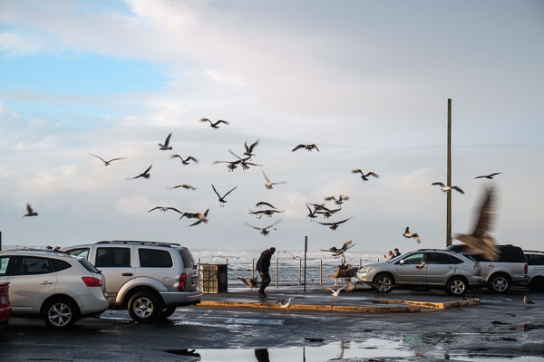 We depart Seaside enroute for destination Yachats. Here we pause briefly over the vast Pacific and the beaches of Manzanita for a couple sips of our "Controversial Coffee". There's also foraging awaiting us down there.