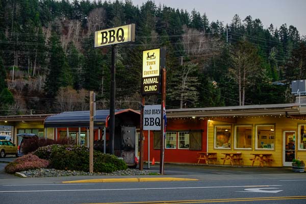 In Gold Beach: The World-Famous Town and Country BBQ and Animal Clinic.