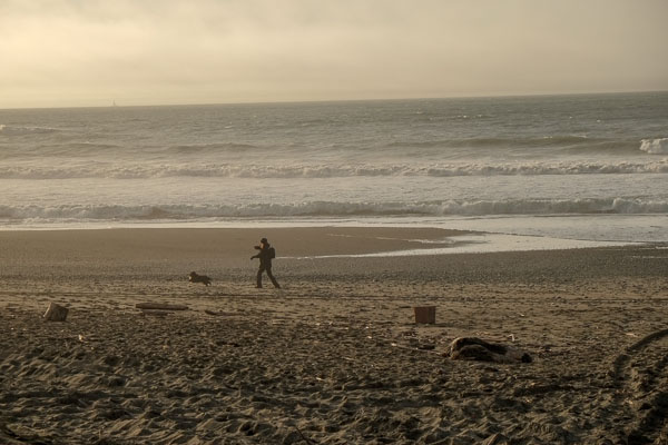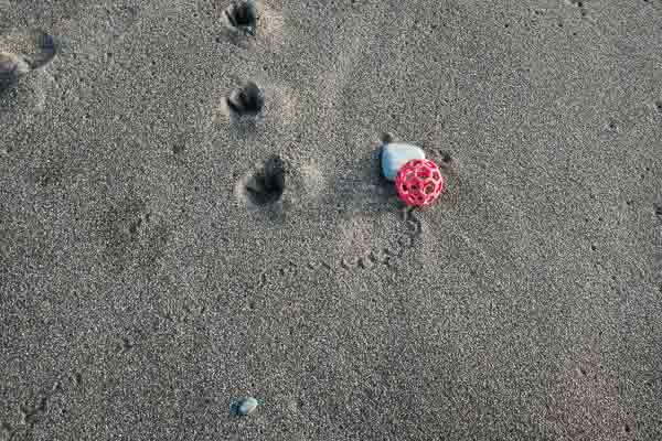 Ella's ball leaves an interesting mark - and rests right beside a beach rock. Creates a kinda weird abstract thingie.