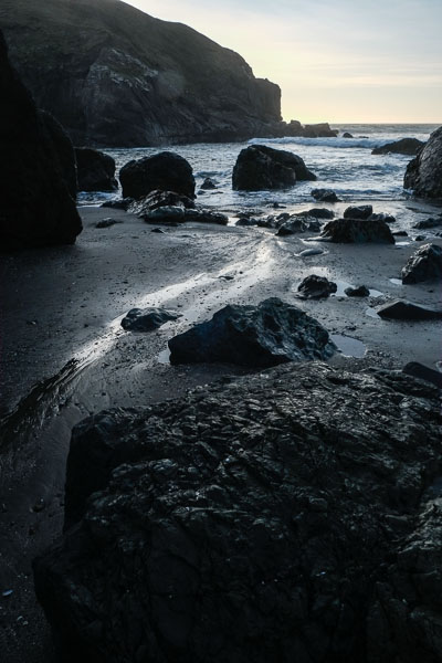 Around the bend at low tide - the beach continues towards Black Point.