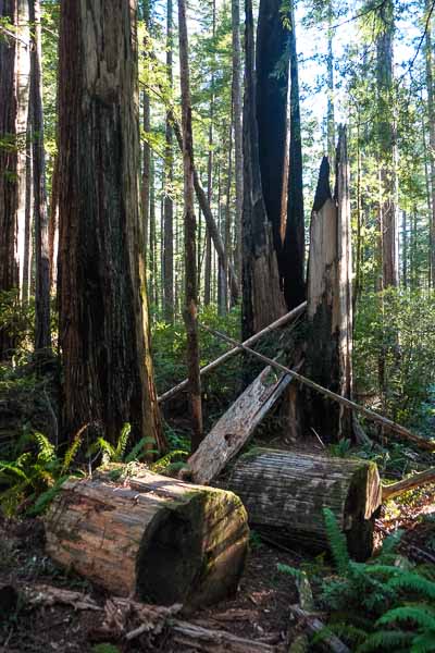 The view straight up inside a burned-out stump. The space is huge - a couple of meters wide at the bottom.