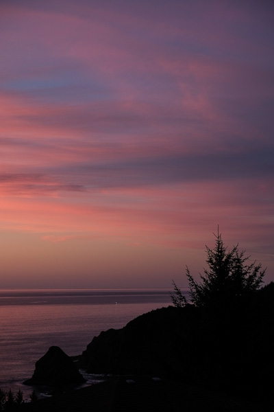 Definitely not angry - guess this one has the be in the "pretty" camp. Note the tiny light on the ocean is a fishing vessel out of Brookings Harbour. We think it's Sig - as there are no crabs in the Berring Sea this season. He's getting our catch for tomorrow night.