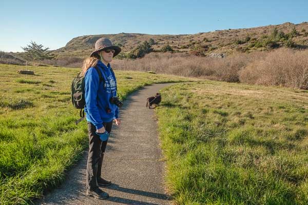 Ella patiently waits hopefully. We get morning coffee - will she get a dog snack?